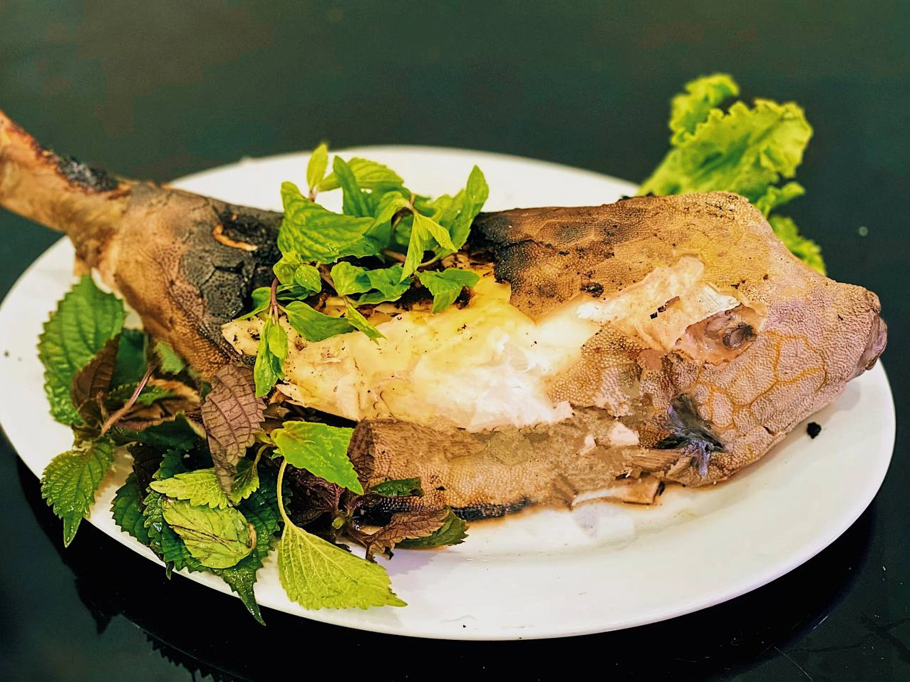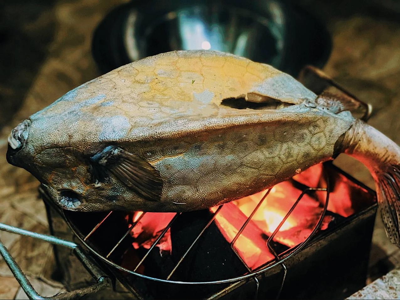 Thịt cá bò hòm rất săn chắc, ngọt dai và đặc biệt là không có mùi tanh. Vậy nên chúng chỉ cần được nướng trên bếp than là đã đủ để nấu chín và thưởng thức được rồi. Một lưu ý quan trọng khi nướng cá, đó là phải luôn lật đều tay để thịt chín đều, không bị vỡ thịt.