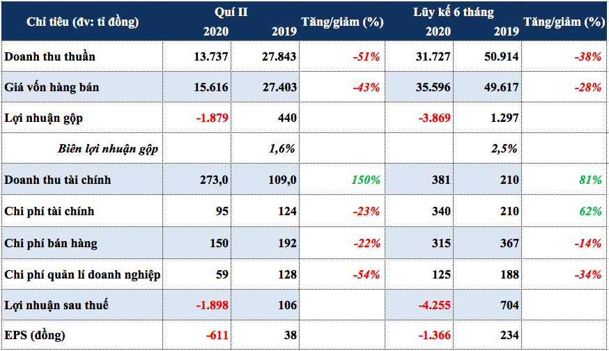 Tiếp tục lỗ gần 1.900 tỉ quý 2/2020