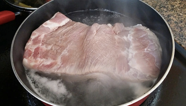 | Luộc thịt bằng nước sôi. |