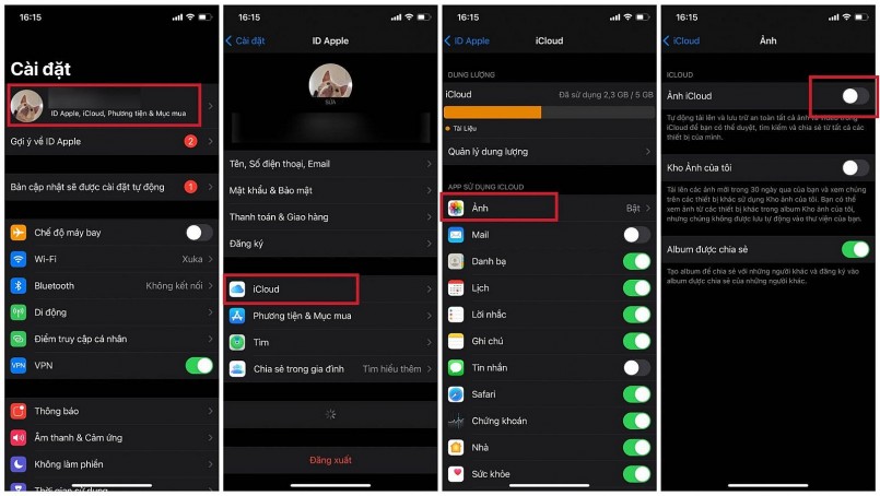 2. Tắt Ảnh iCloud