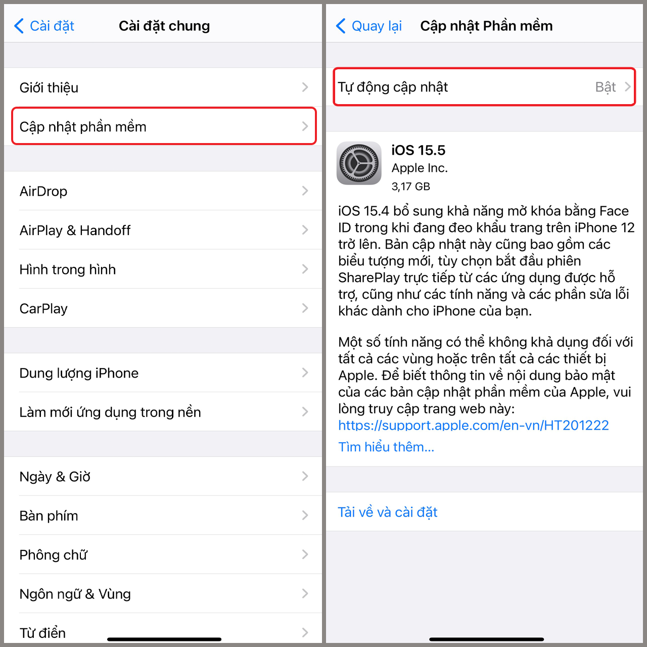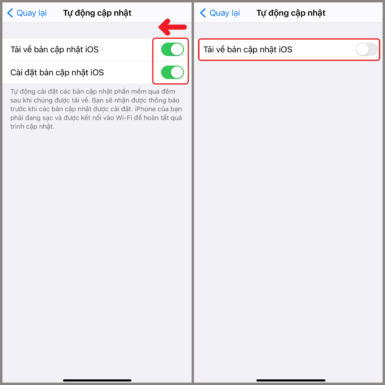 Bước 3. Cuối cùng bạn nhất tắt phần Tải về bản cập nhật iOS và Cài đặt bản cập nhật iOS.