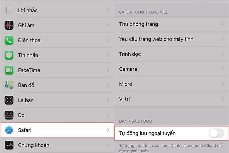 Để áp dụng cách này, bạn truy cập vào “Cài đặt”, chọn mục “Safari” rồi nhấn tắt tính năng “Tự động lưu ngoại tuyến” để hoàn tất.
