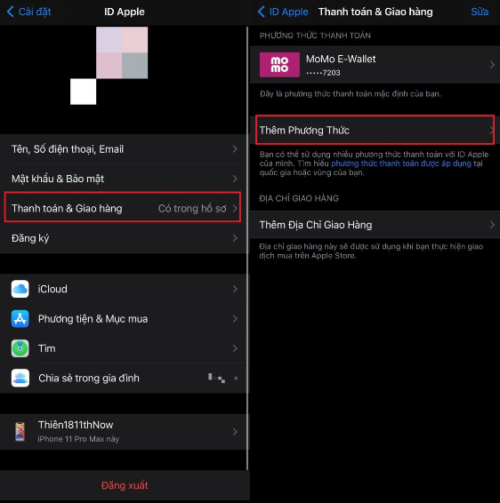 Việc liên kết thanh toán được thực hiện vô cùng đơn giản, bạn chỉ cần vào Cài đặt > Tên > Thanh toán & Giao hàng, sau đó chọn Thêm phương thức để liên kết Ví hoặc thẻ tín dụng.