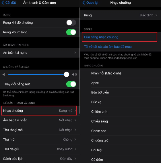 Bước 1: Vào Âm thanh & Cảm ứng trong Cài đặt, chọn Nhạc chuông > Cửa hàng nhạc chuông.