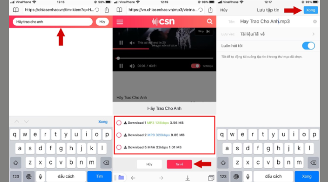 Bạn có thể chọn chất lượng bài hát tùy theo nhu cầu của bạn >> Tải về >> chỉnh sửa tên bài hát rồi nhấn Xong để tải về, bài hát tải về sẽ nằm trong iCloud của bạn.