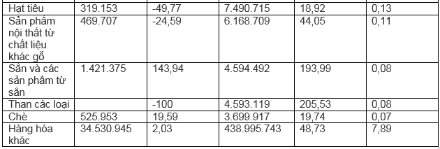(Tính toán từ số liệu công bố của TCHQ)