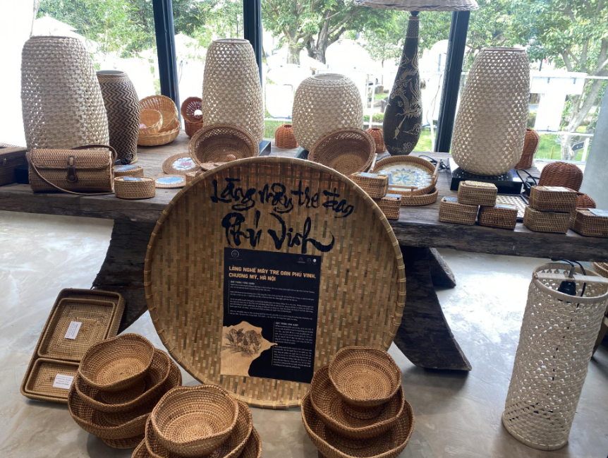 Góc trưng bày sản phẩm mây tre đan của làng nghề Phú Vinh, Hà Nội
