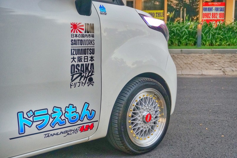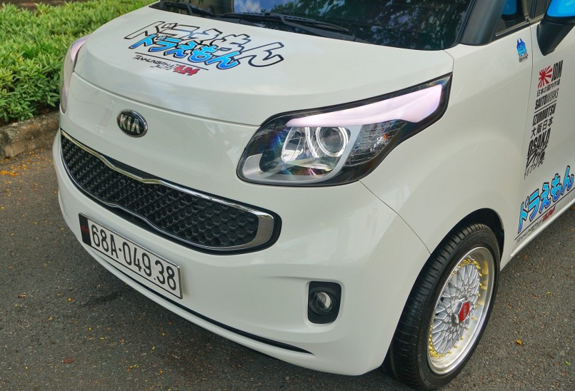 Là xe nhập khẩu nguyên chiếc từ Hàn Quốc, mẫu xe Kia Ray Turbo 2015 trong bài viết này được giữ gìn kỹ lưỡng như xe mới mua. Bên cạnh đó, chủ xe còn tận dụng diện tích lớn trên thân xe để làm đẹp theo phong cách trẻ trung ngộ nghĩnh với đề-can mèo máy Doraemon. Dù trải qua 6 năm sử dụng nhưng xe vẫn có lớp sơn bóng loáng và các chi tiết gắn kết liền lạc chặt chẽ.