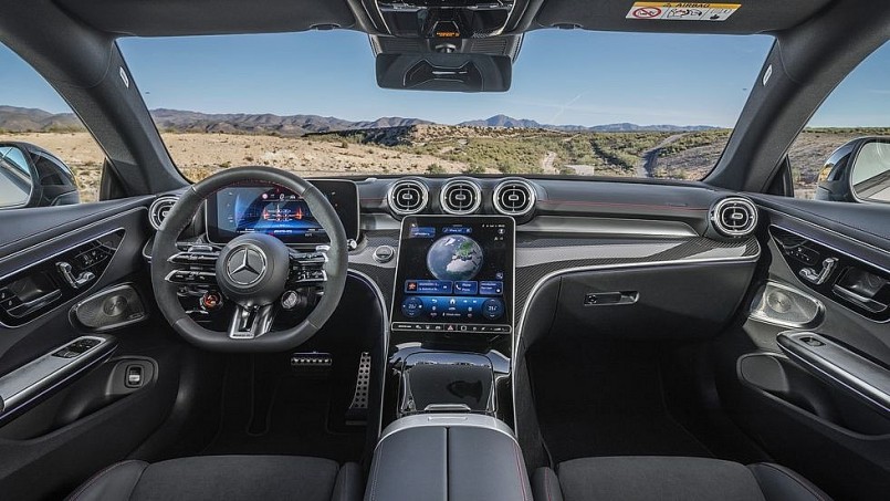 Nội thất có cụm đồng hồ đo kỹ thuật số 12,3 inch và màn hình trung tâm 11,9 inch. Ghế được bọc bằng MB-Tex và bọc vải sợi nhỏ theo tiêu chuẩn, với tùy chọn chuyển sang da nappa với biểu tượng AMG in nổi ở tựa đầu phía trước.
