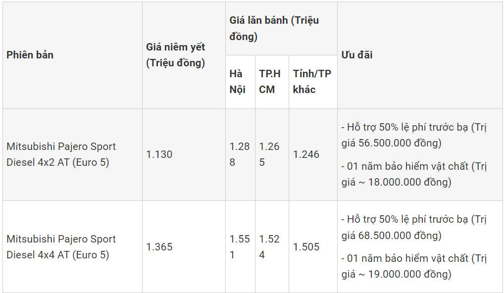 Tham khảo giá niêm yết và lăn bánh xe Mitsubishi Pajero Sport giữa tháng 1/2024