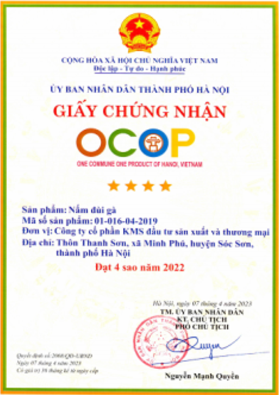 Nấm đùi gà KMS (L.shimeji) có nguồn gốc từ Hàn Quốc mới được nhập giống và nuôi trồng thành công ở nước ta trong vài năm gần đây. Đây là loại nấm dược liệu ăn ngon, chất lượng cao, hàm lượng protein cao từ 3-6 lần so với các loại rau thông thường