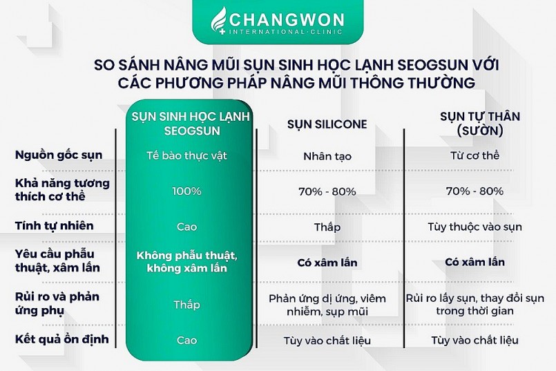 So sánh nâng mũi sụn sinh học lạnh SEOGSUN với các phương pháp thông thường |