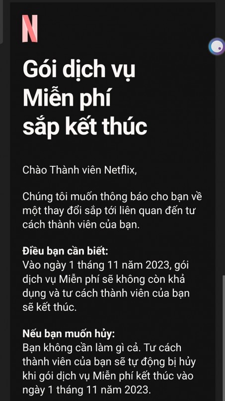Vào tối ngày 2/10, những người đang dùng Netflix miễn phí đã nhận được 1 thông báo của Netflix về việc họ sẽ không còn là thành viên của dịch vụ này và chỉ có thể sử dụng nền tảng nếu nâng cấp lên gói trả phí.