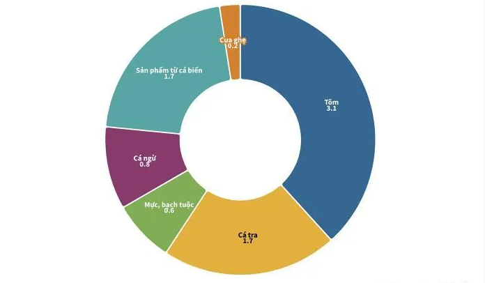 | Cơ cấu kim ngạch xuất khẩu thủy sản trong 11 tháng 2023 (Tỷ USD) |
