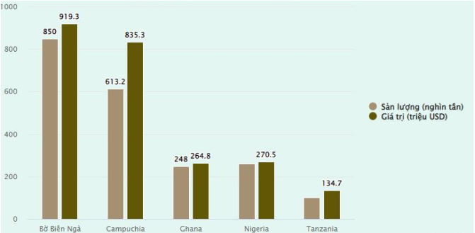 5 thị trường cung cấp hạt điều lớn nhất cho Việt Nam gồm: Bờ Biển Ngà, Campuchia, Nigeria, Ghana và Tanzania.Trong đó, hạt điều nhập khẩu từ Bờ Biển Ngà và Campuchia chiếm 57,5% tổng giá trị nhập khẩu toàn ngành điều trong 11 tháng qua.