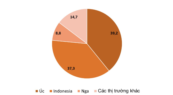 | Úc là thị trường cung cấp than lớn nhất cho Việt Nam trong 11 tháng đầu năm 2023. (Đơn vị: % theo sản lượng) |