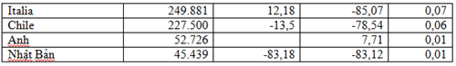 Tiếp theo đó là nhập khẩu thức ăn gia súc và nguyên liệu từ thị trường Mỹ trong tháng 1/2022 giảm mạnh 31,6% so với tháng 12/2021 và giảm 45% so với tháng 1/2021, đạt 44,08 triệu USD, chiếm 12,5% trong tổng kim ngạch.