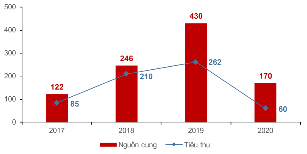 Hoạt động cầm chừng của thị trường khu vực này được thể hiện rõ qua sự sụt giảm thấp kỷ lục về nguồn cung mới và sức tiêu thụ chung ở hầu hết các phân khúc so với năm 2019.