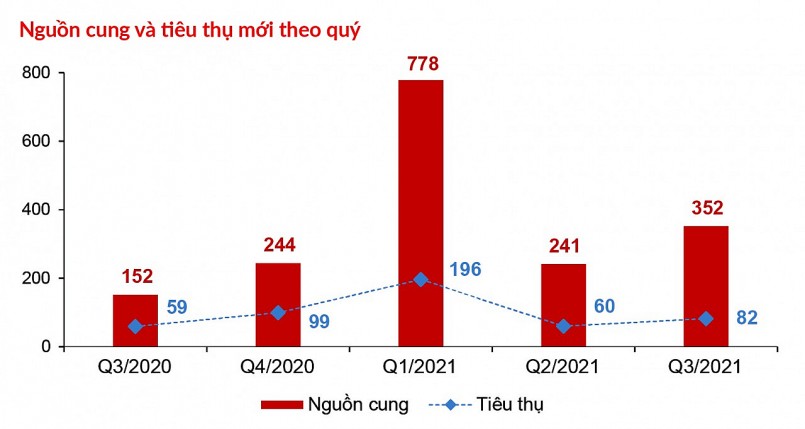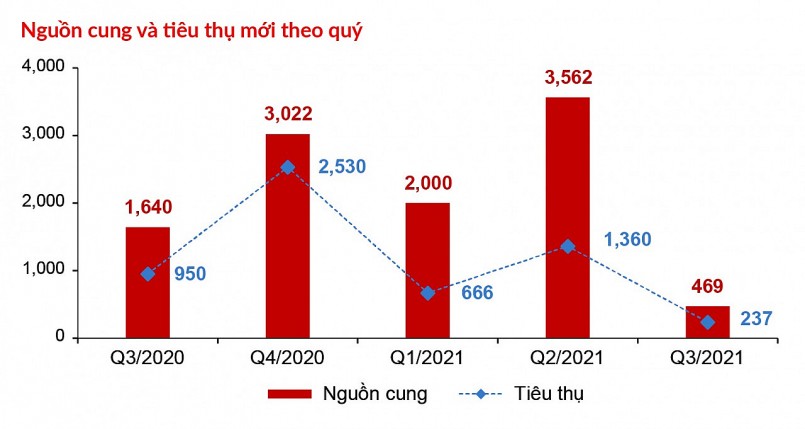 | Nguồn cung và lượng tiêu thụ mới của phân khúc nhà phố/biệt thự trong Quý 3/2021 cũng ghi nhận sự sụt giảm mạnh |