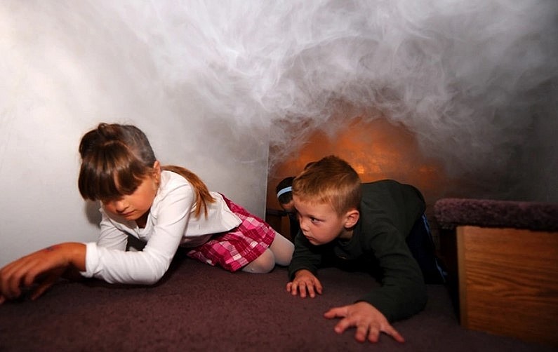 Cha mẹ nên dạy con bịt khăn có thấm nước lên miệng, mũi để tránh ngạt khí và quấn chăn thấm đẫm nước lên người để tránh cháy quần áo, bỏng da.