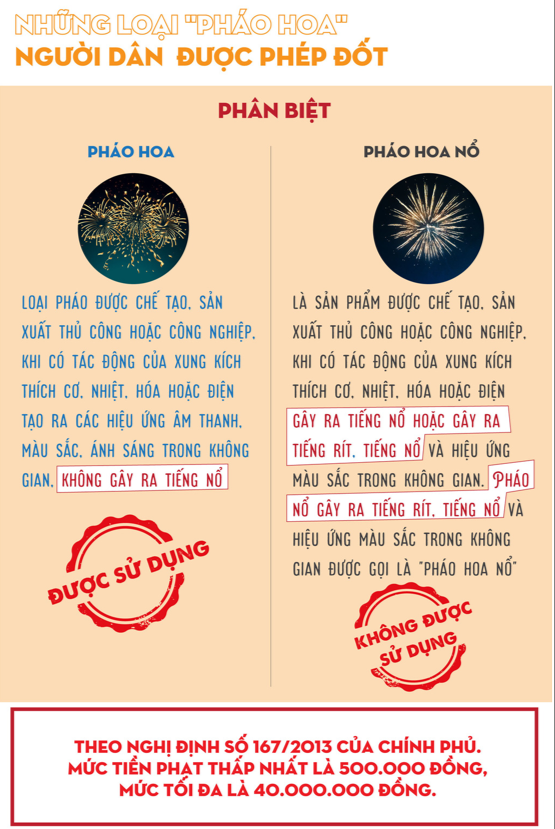 “Nghị định 137/2020 cũng quy định pháo hoa chỉ tạo ra các hiệu ứng âm thanh, ánh sáng, màu sắc trong không gian, không gây ra tiếng nổ”,