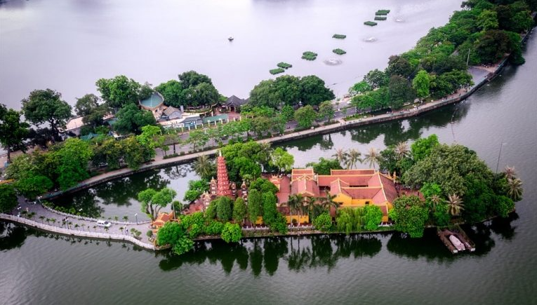 Đây cũng là một địa điểm tham quan nổi tiếng ở Hà Nội. Chùa Trấn Quốc nằm trong 16 ngôi chùa đẹp nhất thế giới. Điều đặc biệt ở đây là Bảo tháp lục độ đài sen có 11 tầng và cao 15m. Mỗi tầng tháp có 6 ô cửa hình vòm đặt một pho tượng Phật bằng đá quý. Đỉnh tháp cũng có đài sen 9 tầng cũng bằng đá quý.