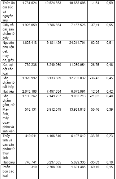 Máy móc, thiết bị, dụng cụ phụ tùng khác đứng ở vị trí thứ 2 về kim ngạch, đạt 146,12 triệu USD chiếm 8% tổng kim ngạch xuất khẩu hàng hóa sang Philippines, giảm 9% so với cùng kỳ năm 2019. Tính riêng tháng 6/2020 đạt 27,76 triệu USD.
