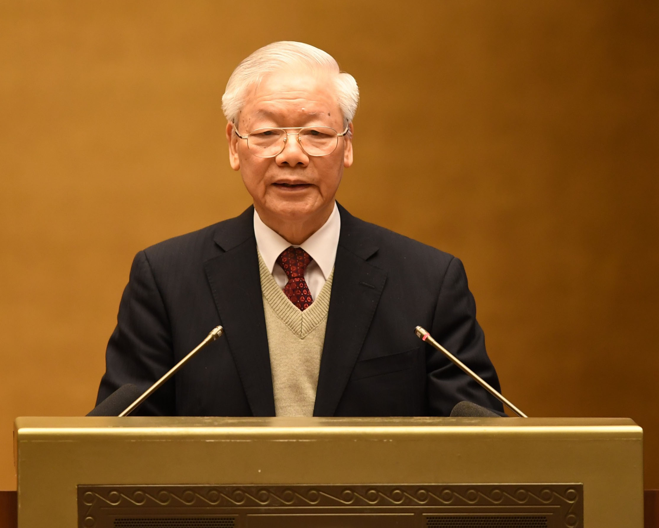 Tổng Bí thư Nguyễn Phú Trọng tin tưởng với một Đất nước, một Dân tộc trọng văn hiến, trọng hiền tài, giàu truyền thống yêu nước và cách mạng; Nhân dân đoàn kết, cần cù, sáng tạo; đội ngũ trí thức, văn nghệ sĩ tâm huyết, tài năng, có trách nhiệm cao với Nhân dân, với Đảng, với Tổ quốc và tương lai của Dân tộc; cùng với sự vào cuộc quyết liệt, đồng bộ của cả hệ thống chính trị, nhất định chúng ta sẽ khắc phục được mọi khó khăn, vượt qua mọi thách thức để chấn hưng và xây dựng thành công một nền văn hoá Việt Nam tiên tiến, đậm đà bản sắc dân tộc, tiếp tục làm vẻ vang thêm cho dân tộc, cho giống nòi, tạo thành sức mạnh vô song để xây dựng Tổ quốc ta ngày càng cường thịnh, Nhân dân ta ngày càng hạnh phúc, Đất nước ta ngày càng phồn vinh, xứng đáng với truyền thống ngàn năm văn hiến và anh hùng của một Dân tộc anh hùng, sánh vai với các cường quốc năm châu trên thế giới.