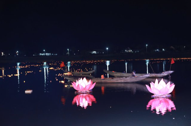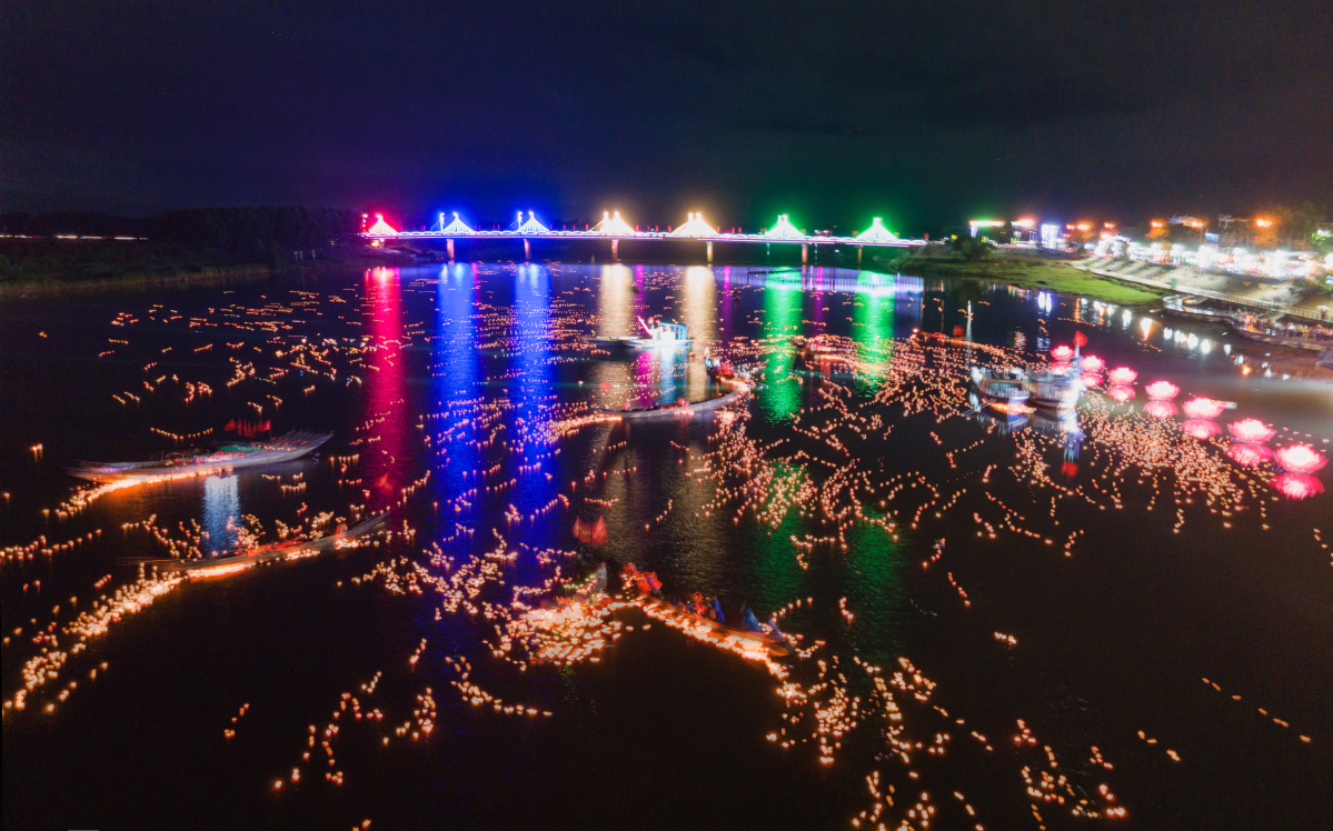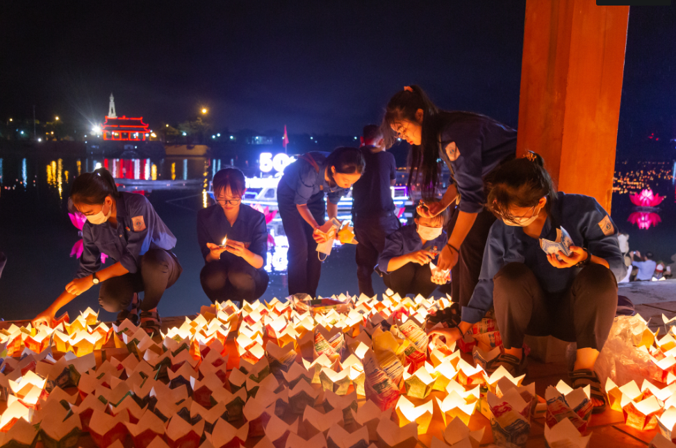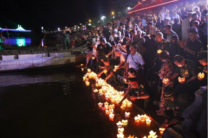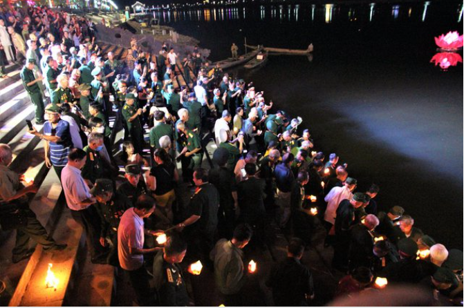 | Hàng vạn hoa đăng tưởng nhớ các anh hùng liệt sĩ đã được thả xuống dòng sông Thạch Hãn |