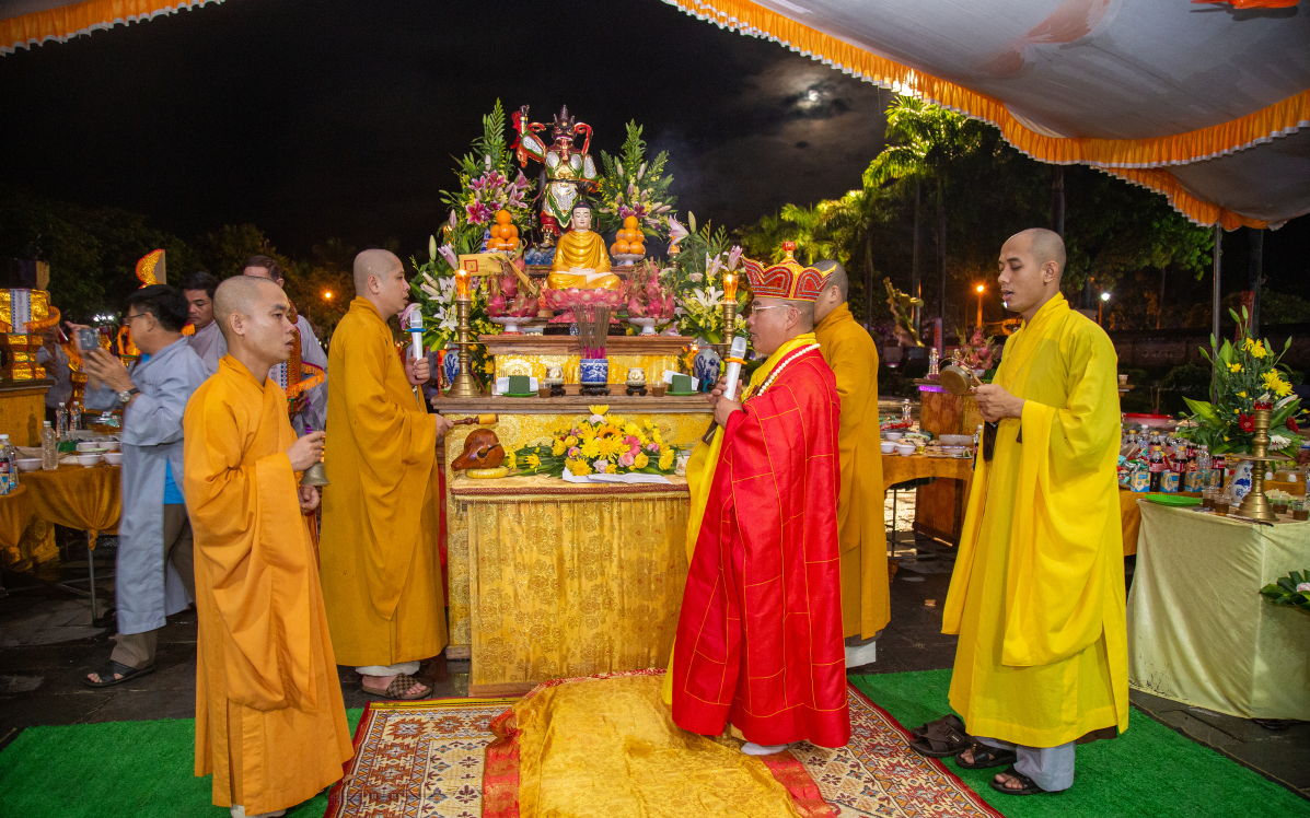 | Trong buổi chiều và tối cùng ngày, tại quảng trường Giải phóng, 300 nhà sư, tăng ni và phật tử tổ chức lễ cầu siêu tri ân các anh hùng liệt sĩ. |