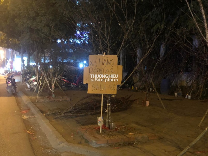Thế nhưng càng đến ngày cận Tết, tiểu thương, nhà vườn bán đào, quất trên đường Nguyễn Xiển (quận Hoàng Mai, Hà Nội) đã phải treo biển hạ giá, đồng giá để mong thu hồi vốn, sớm được về quê.