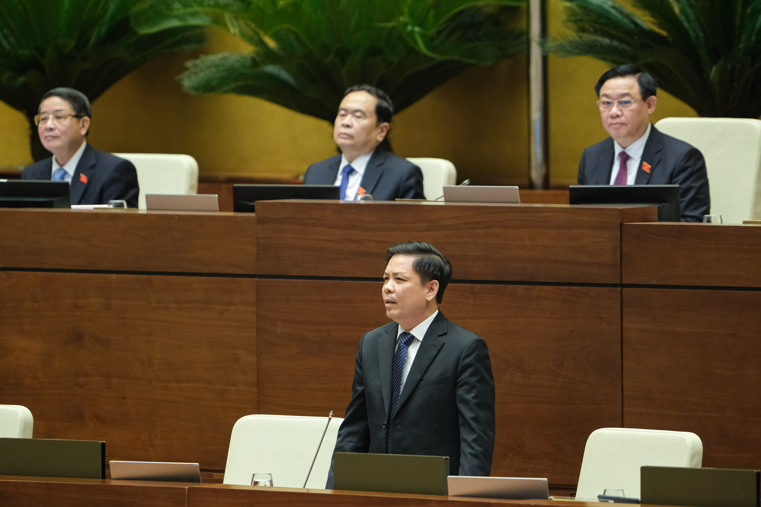 Chủ tịch Quốc hội cho biết, trong phiên chất lớn thuộc lĩnh vực của Bộ trưởng Giao thông vận tải, khi cần thiết, Đoàn Chủ tịch sẽ mời các Bộ trưởng ngành Kế hoạch đầu tư tài chính xây dựng, Tổng Thanh tra Chính phủ. Phó Thủ tướng Chính phủ Lê Văn Thành báo cáo giải trình thêm về những vấn đề liên quan.