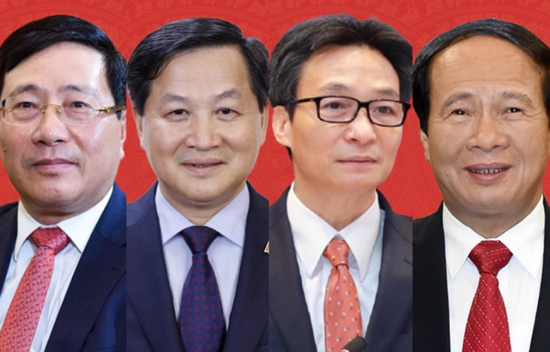 Trong đó, 2 Phó thủ tướng vừa được phê chuẩn bổ nhiệm tại kỳ họp thứ 11 Quốc hội khóa XIV là ông Lê Minh Khái và ông Lê Văn Thành. 2 Phó Thủ tướng đương nhiệm giữ chức vụ này từ đầu nhiệm kỳ khóa XIV là ông Phạm Bình Minh và ông Vũ Đức Đam. Riêng Phó thủ tướng Phạm Bình Minh nhiệm kỳ này sẽ không còn kiêm nhiệm chức Bộ trưởng Ngoại giao.