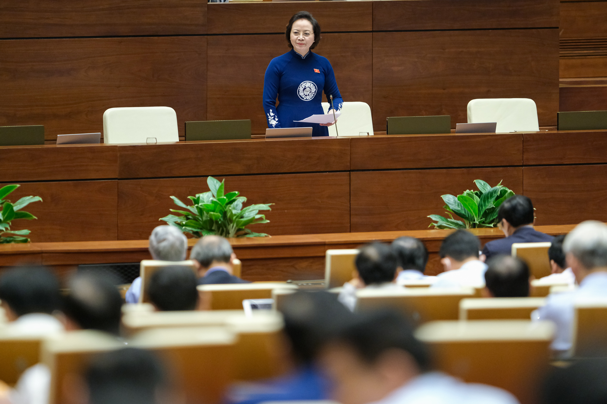 11h13: Bộ trưởng Bộ Nội vụ Phạm Thị Thanh Trà phát biểu giải trình tại phiên thảo luận