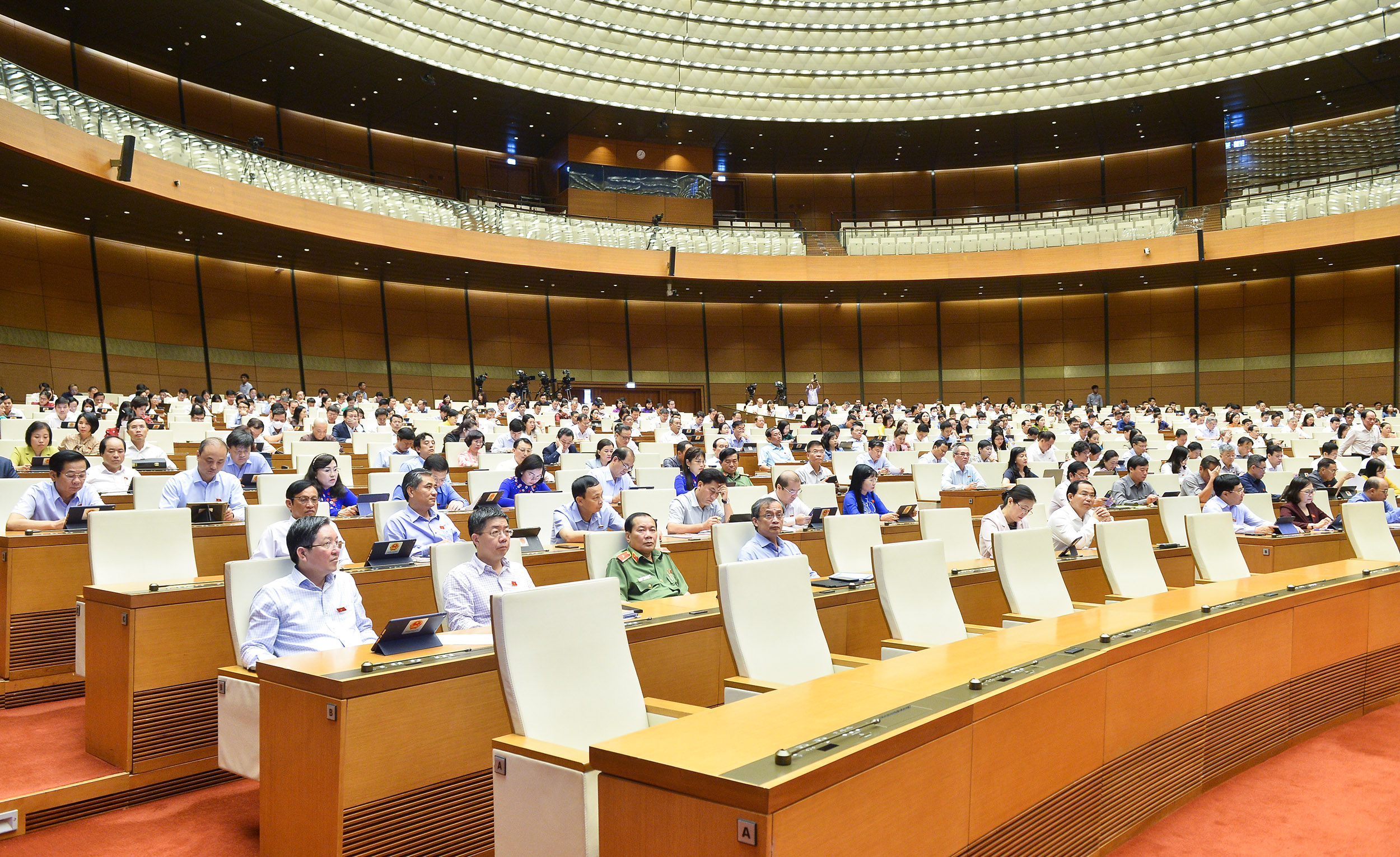Tiếp tục Chương trình kỳ họp thứ 3, Quốc hội khóa XV, sáng ngày 14/6, tại hội trường Diên Hồng, Nhà Quốc hội, dưới sự điều hành của Phó Chủ tịch Quốc hội Nguyễn Khắc Định, Quốc hội tiến hành thảo luận ở hội trường về dự án Luật Thực hiện dân chủ ở cơ sở.