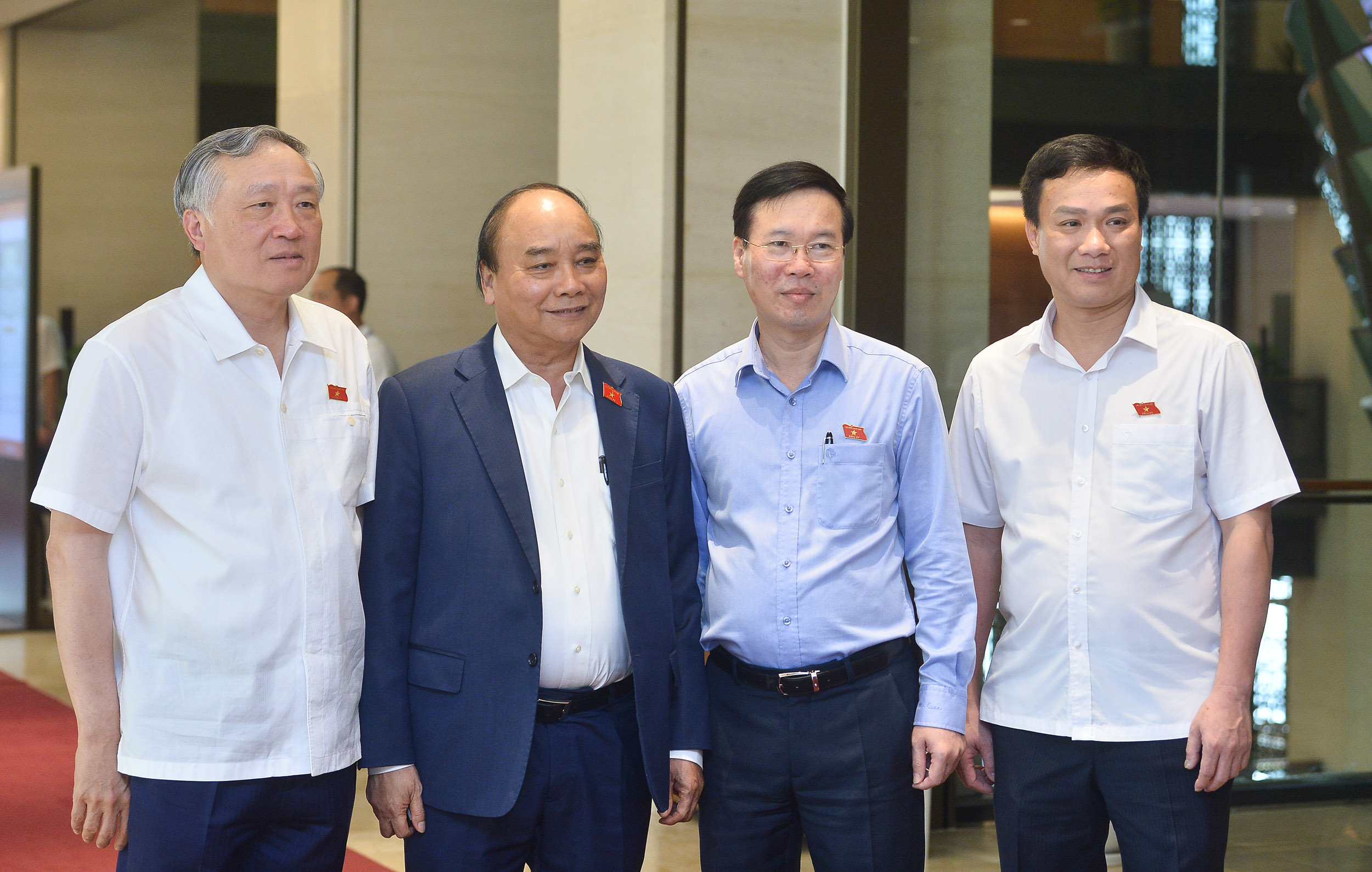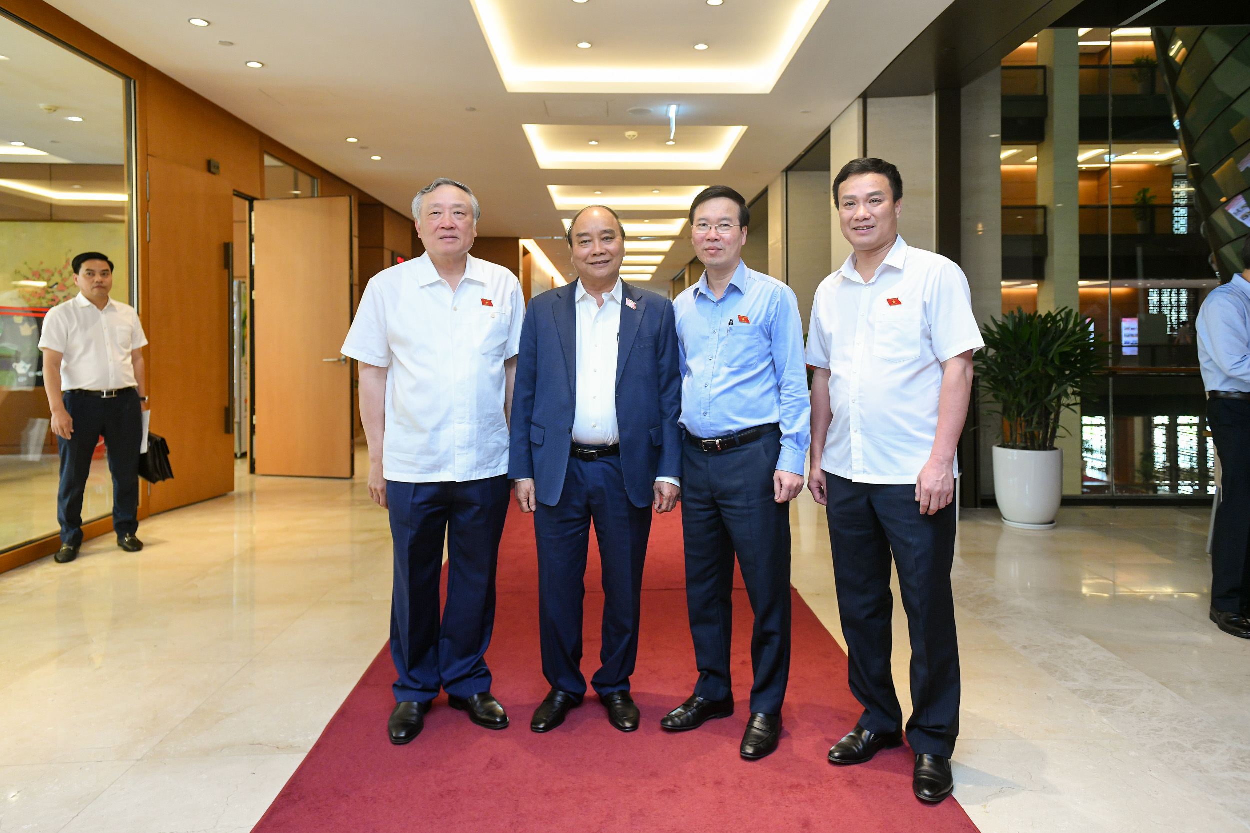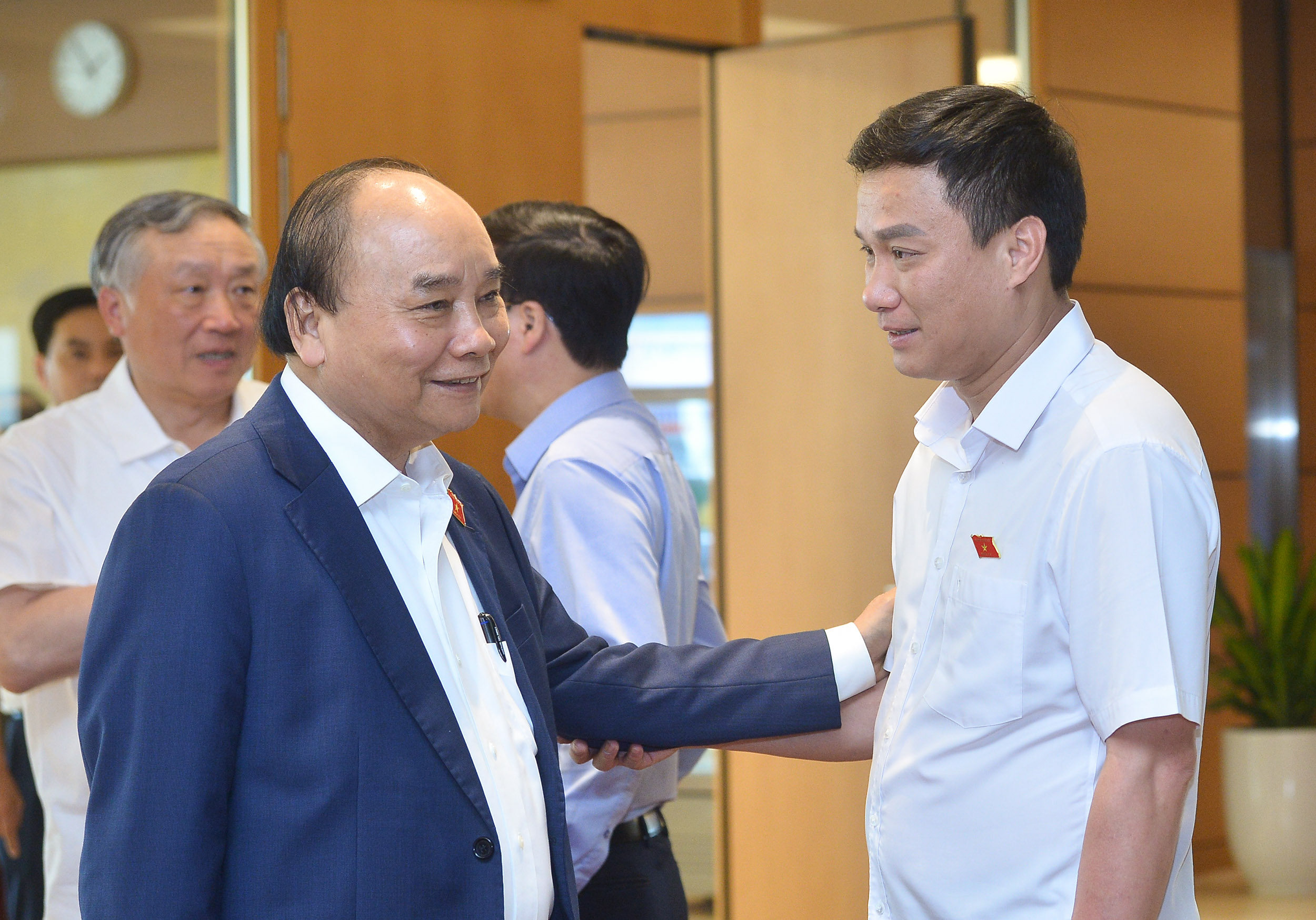 Chủ tịch nước Nguyễn Xuân Phúc trao đổi với đại biểu Quốc hội