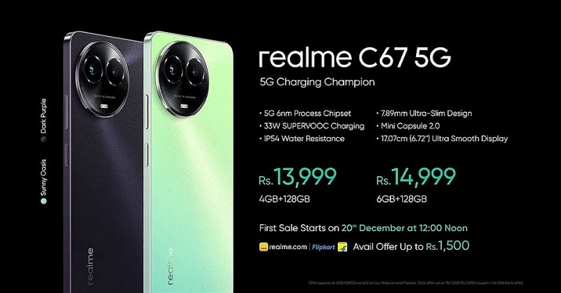 Được biết, realme C67 5G có giá khởi điểm 13,999 INR (khoảng 4.07 triệu đồng) cho cấu hình 4GB/128GB, trong khi model 6GB/128GB có giá 14,999 INR (khoảng 4.36 triệu đồng).