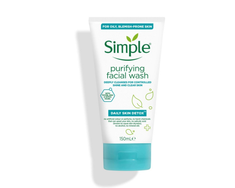 Simple Purifying Gel Wash cũng là sản phẩm phù hợp với da mụn. Sản phẩm chứa 5% chiết xuất cây phỉ với khả năng kiềm dầu hiệu quả. Kẽm trong sản phẩm giúp kháng viêm, trị mụn. Vitamin B3 lại có tác dụng cấp ẩm chuyên sâu. Sản phẩm dạng gel, không tạo nhiều bọt, không gây kích ứng.