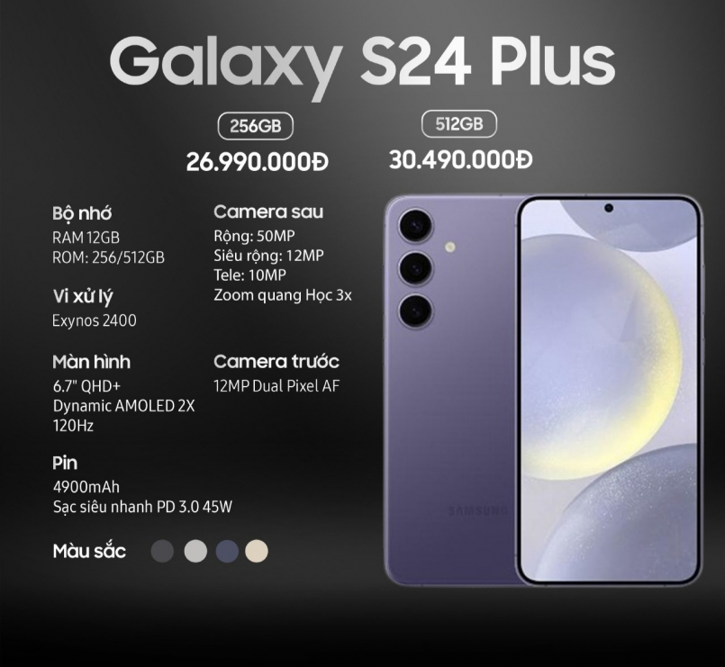 Samsung Galaxy S24 Plus có giá niêm yết lần lượt là: