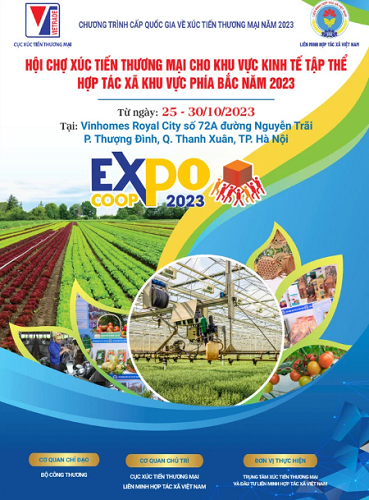 Thực hiện cụ thể hóa Chương trình cấp quốc gia về xúc tiến thương mại năm 2023. “Hội chợ xúc tiến thương mại cho khu vực kinh tế tập thể, hợp tác xã khu vực phía bắc năm 2023” do Trung tâm Xúc tiến thương mại và đầu tư (Liên minh hợp tác xã Việt Nam) là đơn vị được giao thực hiện sẽ diễn ra tại Thủ đô Hà Nội trong 06 ngày từ 25/10 -30/10 tại Vinhomes Royal City, số 72A đường Nguyễn Trãi, phường Thượng Đình, quận Thanh Xuân, thành phố Hà Nội với quy mô 300 gian hàng, cùng sự góp mặt của 41 Liên minh hợp tác xã các tỉnh, thành phố trên địa bàn cả nước.