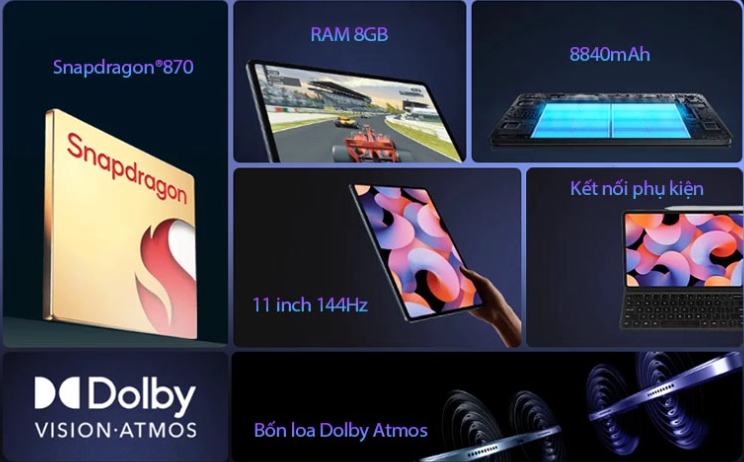 Về hiệu năng, Xiaomi Pad 6 được trang bị bộ vi xử lý Snapdragon 870 mạnh mẽ mang đến hiệu năng hàng đầu trong phân khúc. Kết hợp với RAM 8 GB, cho phép bạn thực hiện nhanh chóng các tác vụ đọc, ghi, vẽ, làm việc và chơi game mà không gặp trở ngại. Dù bạn đang thực hiện nhiều tác vụ cùng một lúc hay chạy các ứng dụng yêu cầu hiệu năng cao, Xiaomi Pad 6 hoàn toàn đáp ứng các tác vụ mà bạn yêu cầu.