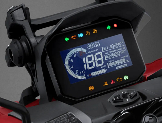 Hệ thống đèn pha trước sử dụng công nghệ LED. Đèn pha đặt thấp, đèn định vị thiết kế khá kiểu cách, trong khi xi-nhan được gắn gần với tay lái. Kính chắn gió lớn ở đầu xe có thể điều chỉnh 2 cấp độ mà không cần mở bu-lông, lốp gai to bản, ghi đông thiết kế cao. Mặt đồng hồ TFT thế hệ mới giao diện khá giống các mẫu môtô phân khối lớn, hiển thị đầy đủ thông tin vận hành quan trọng như mức tiêu hao nhiên liệu, hành trình...