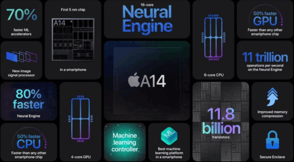 Con chip Apple A14 SoC 5nm mạnh mẽ
