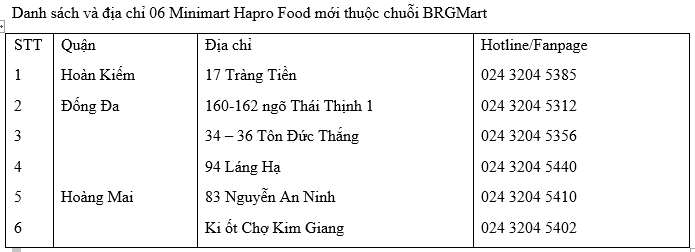 6 Minimart Hapro Food thuộc chuỗi BRGMart mới mở thêm nằm tại các khu vực trung tâm, đông dân cư, các tòa nhà văn phòng và có vị trí giao thông thuận lợi.
