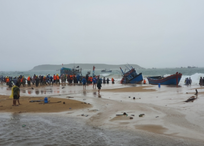 | Một tàu cá bị sóng đánh hư hỏng tại Phú Yên. Ảnh: Minh Khôi |