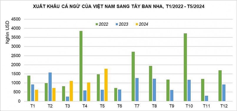 Năm 2023, xuất khẩu cá ngừ của Việt Nam sang Tây Ban Nha sụt giảm liên tục. Xu hướng sụt giảm này vẫn tiếp tục trong 2 tháng đầu năm. Tuy nhiên, từ tháng 3 trở lại đây xuất khẩu cá ngừ của Việt Nam sang thị trường này đã tăng trưởng liên tục ở mức cao so với cùng kỳ.