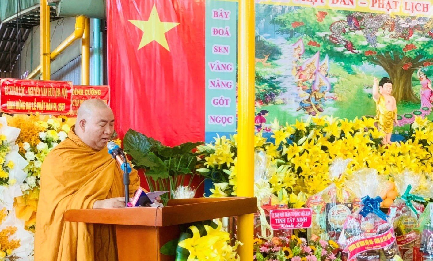 Tiếp nối Đại lễ Phật Đản Phật lịch 2567, Hòa thượng Thích Huệ Tâm - UV HĐTS, Phó Trưởng ban thường trực BTS GHPGVN tỉnh Tây Ninh cung tuyên Thông điệp Đại lễ Phật Đản Phật lịch 2567 của Trưởng lão Hòa thượng Pháp Chủ GHPGVN. |
