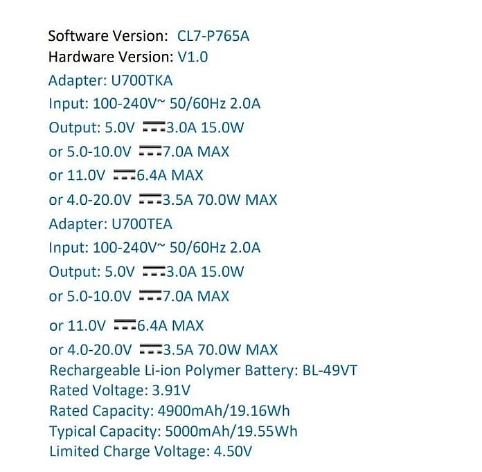 Đáng chú ý, các thiết bị sẽ xuất xưởng kèm theo bộ đổi nguồn U700TKA hỗ trợ sạc nhanh có dây 70W.