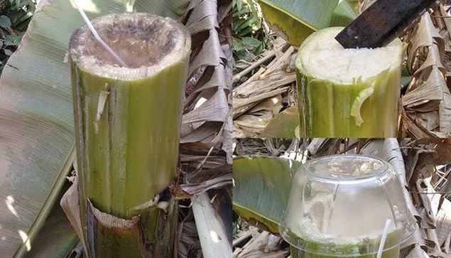 | Mọi người có thể lấy nước trong thân cây chuối để sử dụng giúp hạ huyết áp, hỗ trợ người bị tiểu đường rất tốt. |