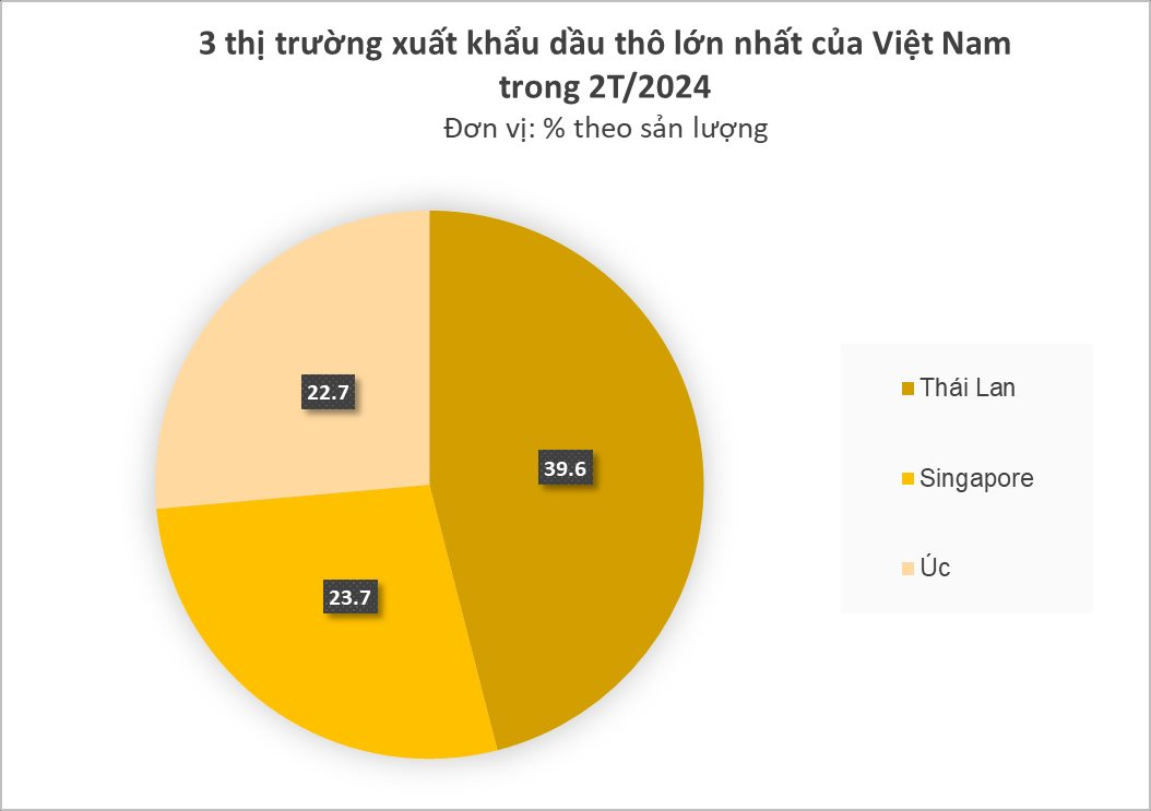 Đứng thứ 2 và 3 là Singapore và Úc, chiếm tỷ trọng lần lượt là 23,7% và 22,7% trong tổng lượng xuất khẩu. Đáng chú ý, Singapore đang nổi lên là một thị trường tích cực mua dầu thô của Việt Nam trong năm 2023, có mức tăng trưởng cao nhất trong tất cả các thị trường.